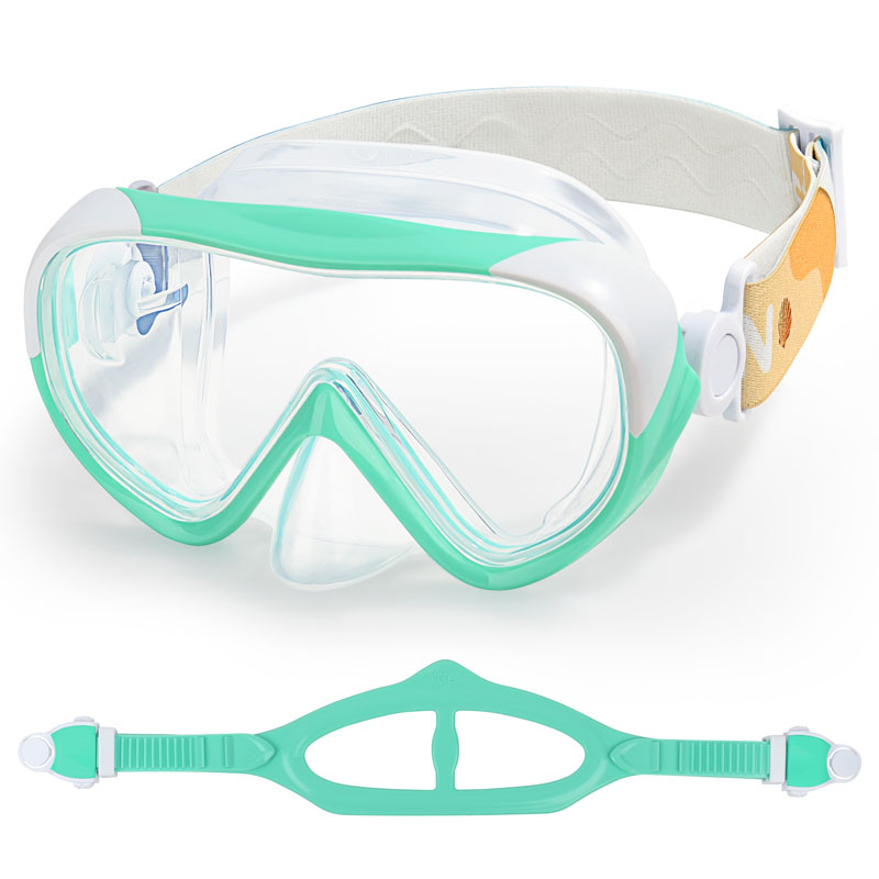 패브릭 헤드 스트랩이있는 어린이 다이빙 마스크입니다. 부드러운 패브릭 헤드 스트랩은 길고 곱슬 머리 위로 쉽게 미끄러 져 엉킴을 방지합니다. 또한 안전한 스트랩은 아이들이 수영 고글을 제자리에 유지하여 눈과 귀에 대한 편안함을 보장합니다.